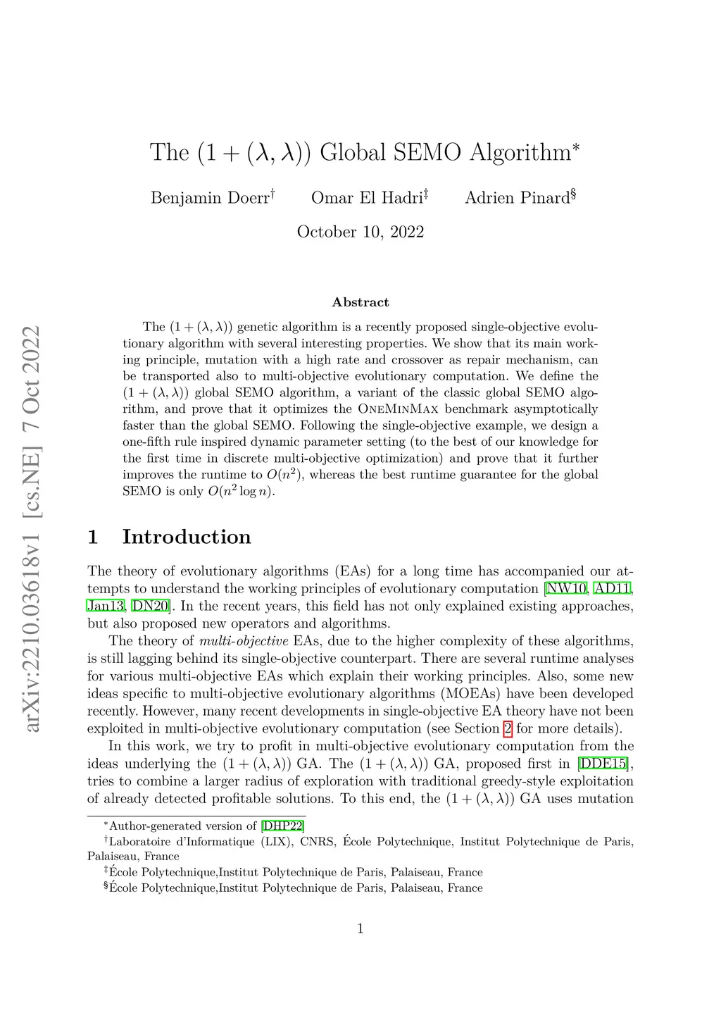 The genetic algorithm is a recently proposed single-objective evolutionary algorithm with several interesting properties. We show that its main working principle, mutation with a high rate and crossover as repair mechanism, can be transported also to multi-objective evolutionary computation. We define the global SEMO algorithm, a variant of the classic global SEMO algorithm, and prove that it optimizes the OneMinMax benchmark asymptotically faster than the global SEMO. Following the single-objective example, we design a one-fifth rule inspired dynamic parameter setting (to the best of our knowledge for the first time in discrete multi-objective optimization) and prove that it further improves the runtime to , whereas the best runtime guarantee for the global SEMO is only .