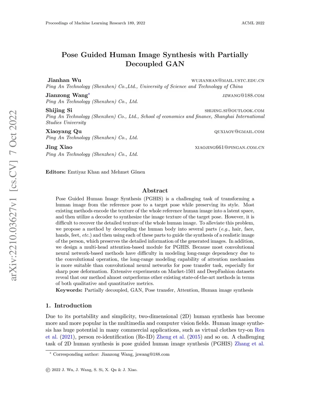 Pose Guided Human Image Synthesis with Partially Decoupled GAN