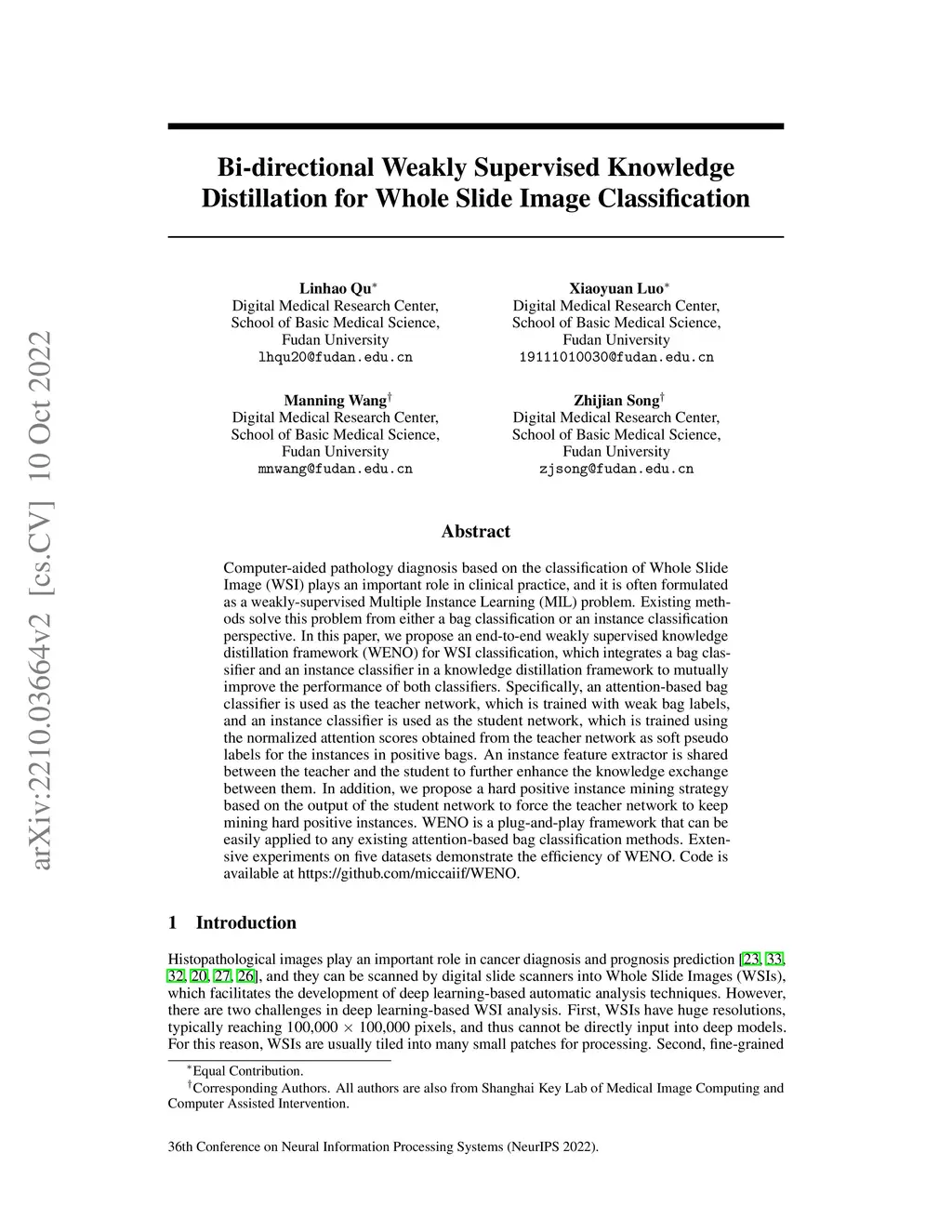 Bi-directional Weakly Supervised Knowledge Distillation for Whole Slide