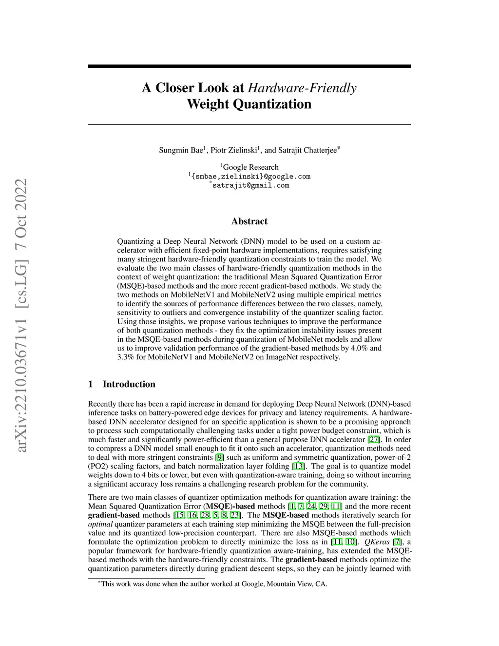 Quantizing a Deep Neural Network (DNN) model to be used on a custom accelerator with efficient fixed-point hardware implementations, requires satisfying many stringent hardware-friendly quantization constraints to train the model. We evaluate the two main classes of hardware-friendly quantization methods in the context of weight quantization: the traditional Mean Squared Quantization Error (MSQE)-based methods and the more recent gradient-based methods. We study the two methods on MobileNetV1 and MobileNetV2 using multiple empirical metrics to identify the sources of performance differences between the two classes, namely, sensitivity to outliers and convergence instability of the quantizer scaling factor. Using those insights, we propose various techniques to improve the performance of both quantization methods - they fix the optimization instability issues present in the MSQE-based methods during quantization of MobileNet models and allow us to improve validation performance of the gradient-based methods by 4.0% and 3.3% for MobileNetV1 and MobileNetV2 on ImageNet respectively.