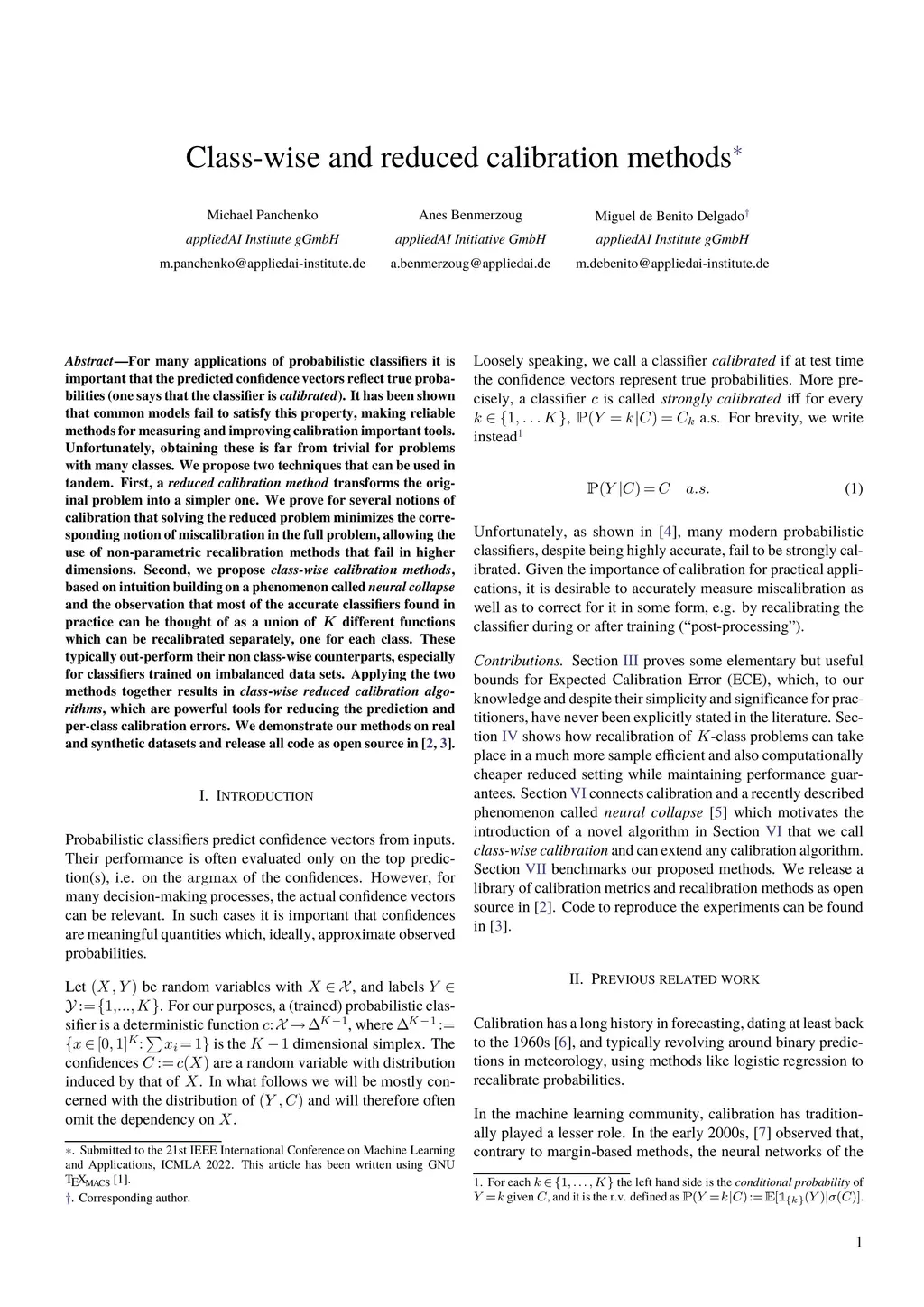For many applications of probabilistic classifiers it is important that the predicted confidence vectors reflect true probabilities (one says that the classifier is calibrated). It has been shown that common models fail to satisfy this property, making reliable methods for measuring and improving calibration important tools. Unfortunately, obtaining these is far from trivial for problems with many classes. We propose two techniques that can be used in tandem. First, a reduced calibration method transforms the original problem into a simpler one. We prove for several notions of calibration that solving the reduced problem minimizes the corresponding notion of miscalibration in the full problem, allowing the use of non-parametric recalibration methods that fail in higher dimensions. Second, we propose class-wise calibration methods, based on intuition building on a phenomenon called neural collapse and the observation that most of the accurate classifiers found in practice can be thought of as a union of K different functions which can be recalibrated separately, one for each class. These typically out-perform their non class-wise counterparts, especially for classifiers trained on imbalanced data sets. Applying the two methods together results in class-wise reduced calibration algorithms, which are powerful tools for reducing the prediction and per-class calibration errors. We demonstrate our methods on real and synthetic datasets and release all code as open source at https://github.com/appliedAI-Initiative