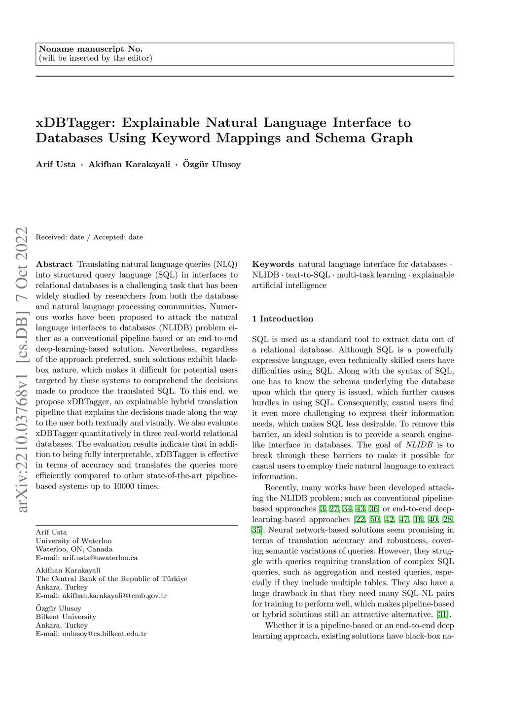 xDBTagger: Explainable Natural Language Interface to Databases Using