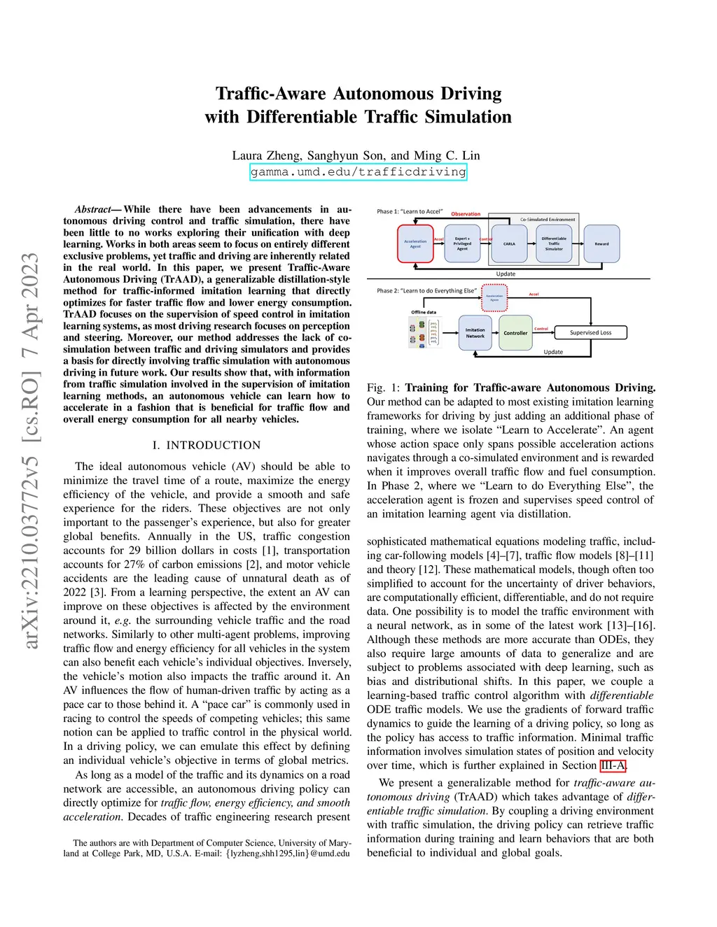While there have been advancements in autonomous driving control and traffic simulation, there have been little to no works exploring their unification with deep learning. Works in both areas seem to focus on entirely different exclusive problems, yet traffic and driving are inherently related in the real world. In this paper, we present Traffic-Aware Autonomous Driving (TrAAD), a generalizable distillation-style method for traffic-informed imitation learning that directly optimizes for faster traffic flow and lower energy consumption. TrAAD focuses on the supervision of speed control in imitation learning systems, as most driving research focuses on perception and steering. Moreover, our method addresses the lack of co-simulation between traffic and driving simulators and provides a basis for directly involving traffic simulation with autonomous driving in future work. Our results show that, with information from traffic simulation involved in the supervision of imitation learning methods, an autonomous vehicle can learn how to accelerate in a fashion that is beneficial for traffic flow and overall energy consumption for all nearby vehicles.