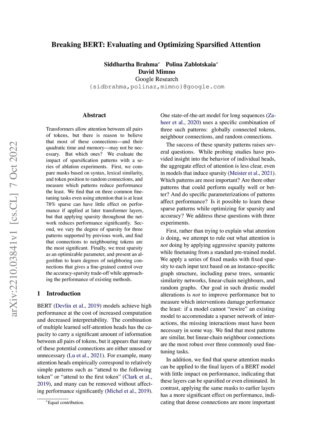 Breaking BERT: Evaluating and Optimizing Sparsified Attention