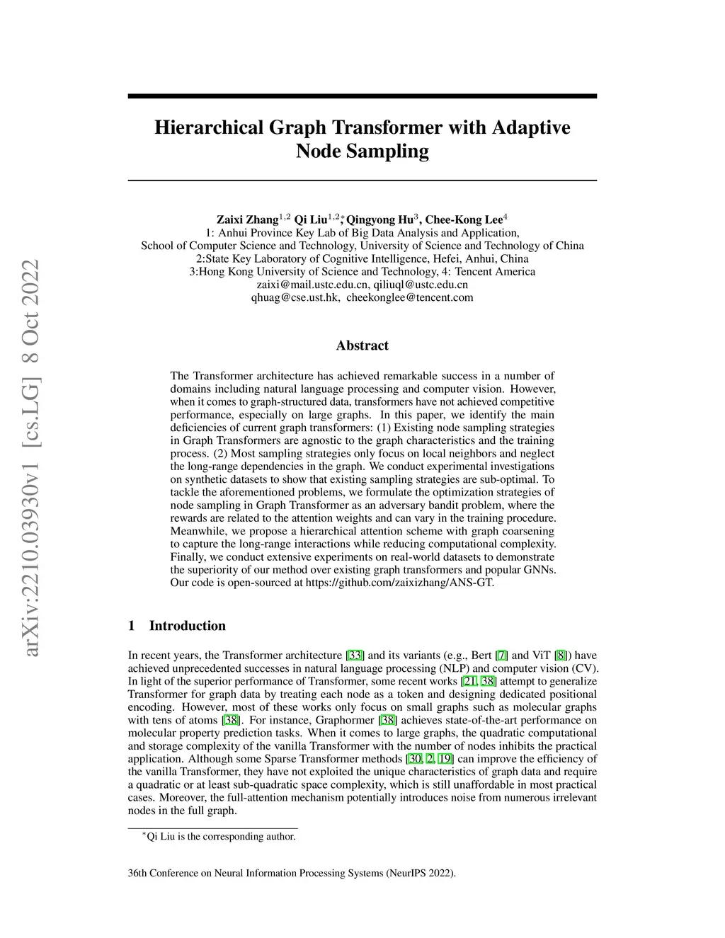 Hierarchical Graph Transformer with Adaptive Node Sampling