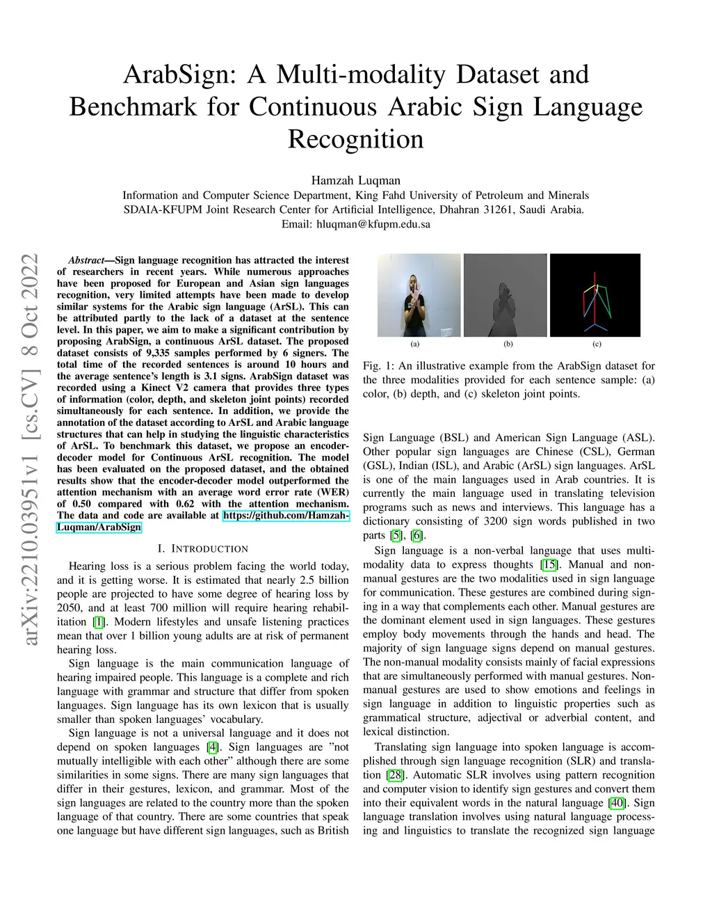 ArabSign: A Multi-modality Dataset and Benchmark for Continuous Arabic
