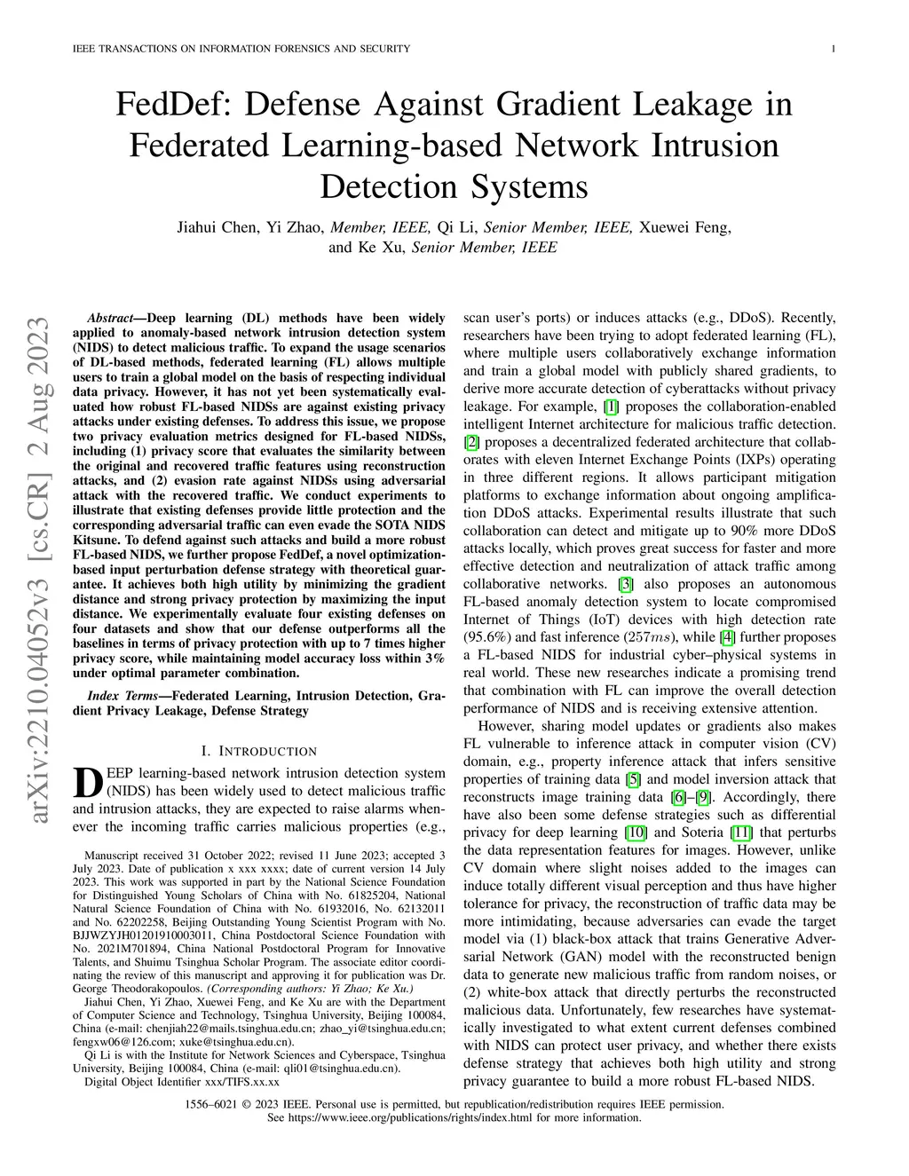Deep learning (DL) methods have been widely applied to anomaly-based network intrusion detection system (NIDS) to detect malicious traffic. To expand the usage scenarios of DL-based methods, federated learning (FL) allows multiple users to train a global model on the basis of respecting individual data privacy. However, it has not yet been systematically evaluated how robust FL-based NIDSs are against existing privacy attacks under existing defenses. To address this issue, we propose two privacy evaluation metrics designed for FL-based NIDSs, including (1) privacy score that evaluates the similarity between the original and recovered traffic features using reconstruction attacks, and (2) evasion rate against NIDSs using adversarial attack with the recovered traffic. We conduct experiments to illustrate that existing defenses provide little protection and the corresponding adversarial traffic can even evade the SOTA NIDS Kitsune. To defend against such attacks and build a more robust FL-based NIDS, we further propose FedDef, a novel optimization-based input perturbation defense strategy with theoretical guarantee. It achieves both high utility by minimizing the gradient distance and strong privacy protection by maximizing the input distance. We experimentally evaluate four existing defenses on four datasets and show that our defense outperforms all the baselines in terms of privacy protection with up to 7 times higher privacy score, while maintaining model accuracy loss within 3% under optimal parameter combination.