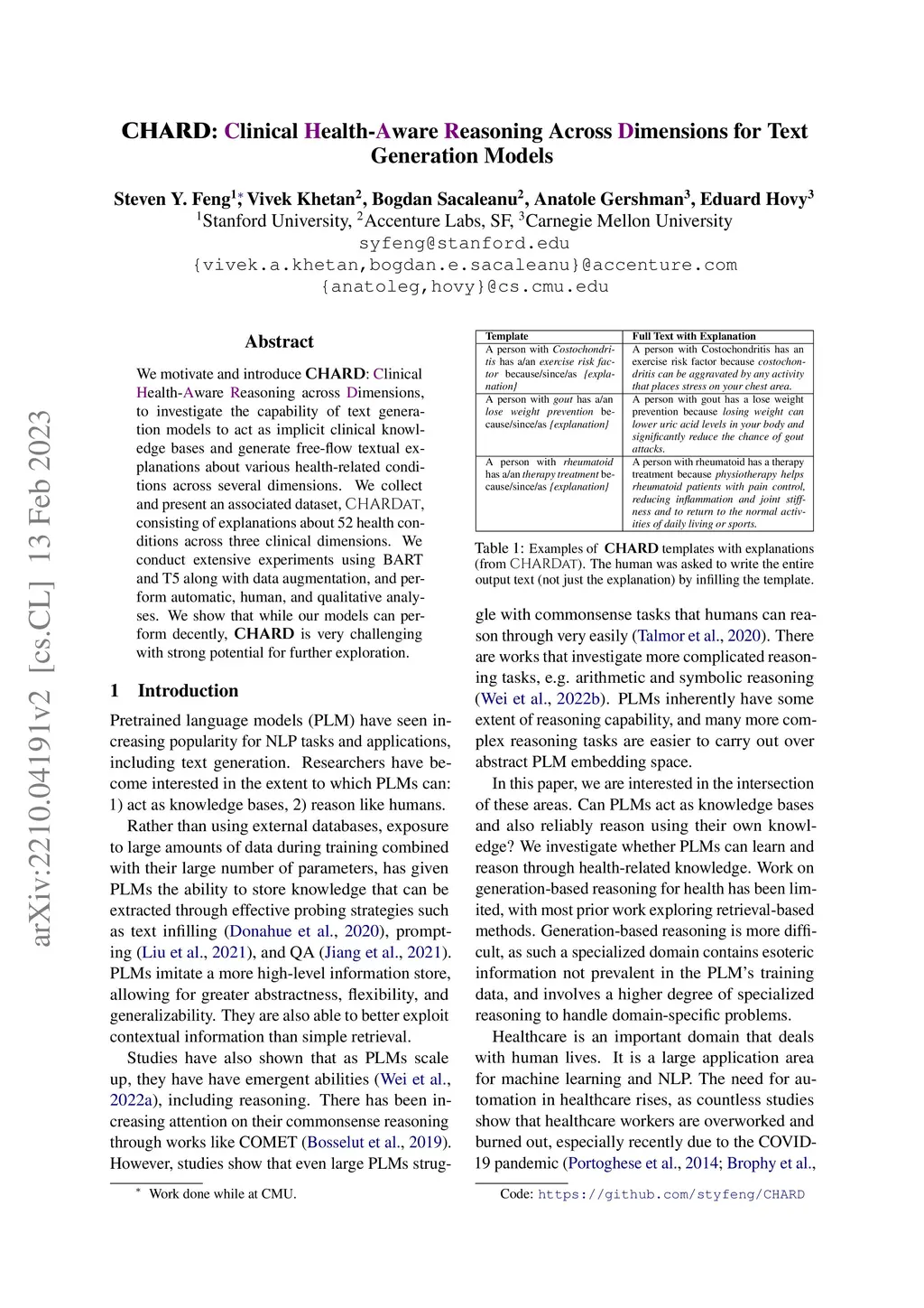 CHARD: Clinical Health-Aware Reasoning Across Dimensions for Text