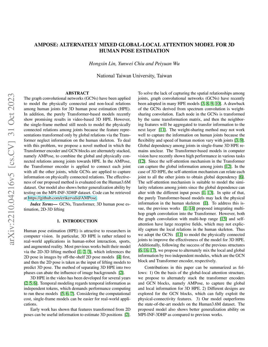 AMPose: Alternately Mixed Global-Local Attention Model for 3D Human Pose