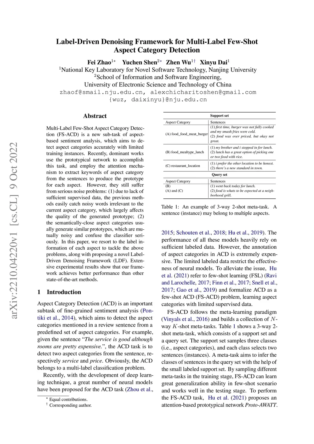 Label-Driven Denoising Framework for Multi-Label Few-Shot Aspect