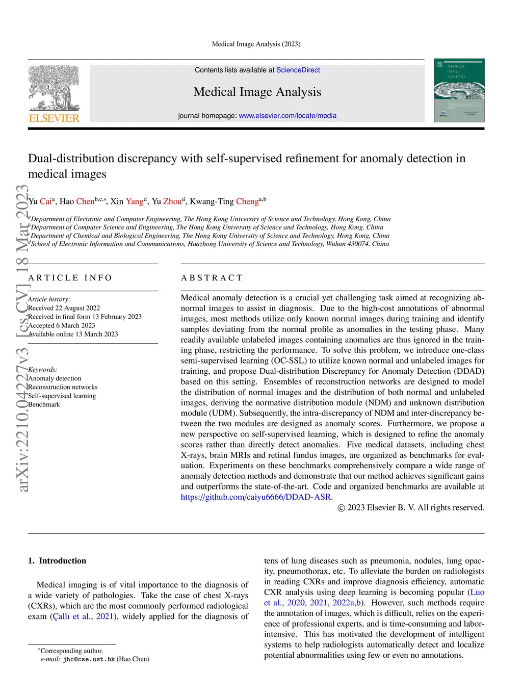 Dual-distribution discrepancy with self-supervised refinement for