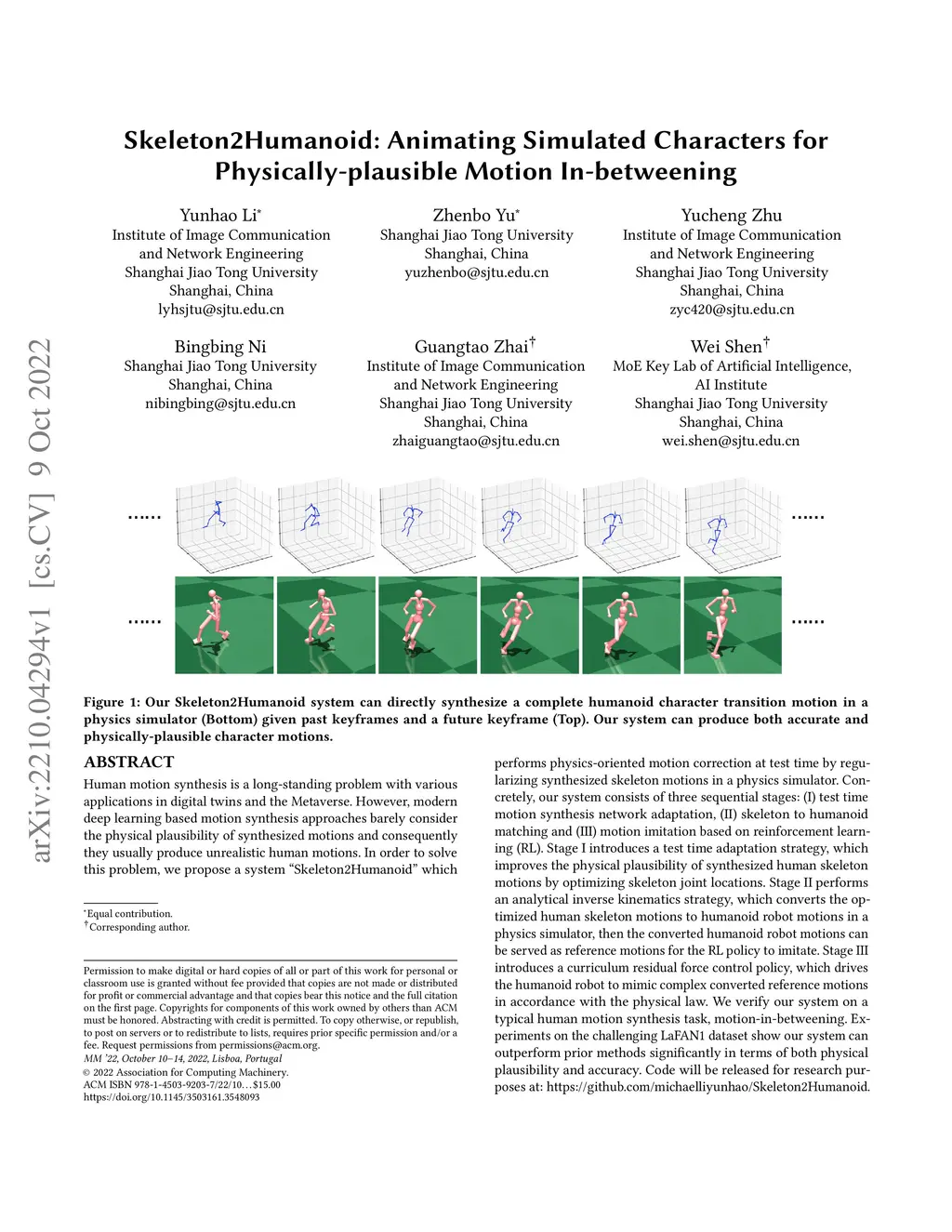 Skeleton2Humanoid: Animating Simulated Characters for