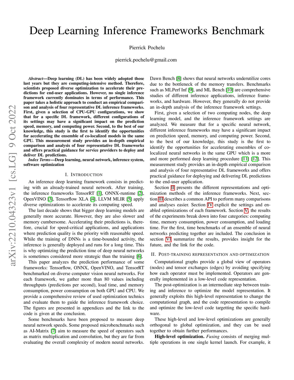 Deep learning (DL) has been widely adopted those last years but they are computing-intensive method. Therefore, scientists proposed diverse optimization to accelerate their predictions for end-user applications. However, no single inference framework currently dominates in terms of performance. This paper takes a holistic approach to conduct an empirical comparison and analysis of four representative DL inference frameworks. First, given a selection of CPU-GPU configurations, we show that for a specific DL framework, different configurations of its settings may have a significant impact on the prediction speed, memory, and computing power. Second, to the best of our knowledge, this study is the first to identify the opportunities for accelerating the ensemble of co-localized models in the same GPU. This measurement study provides an in-depth empirical comparison and analysis of four representative DL frameworks and offers practical guidance for service providers to deploy and deliver DL predictions.