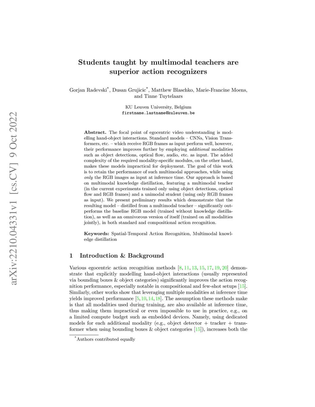 Students taught by multimodal teachers are superior action recognizers