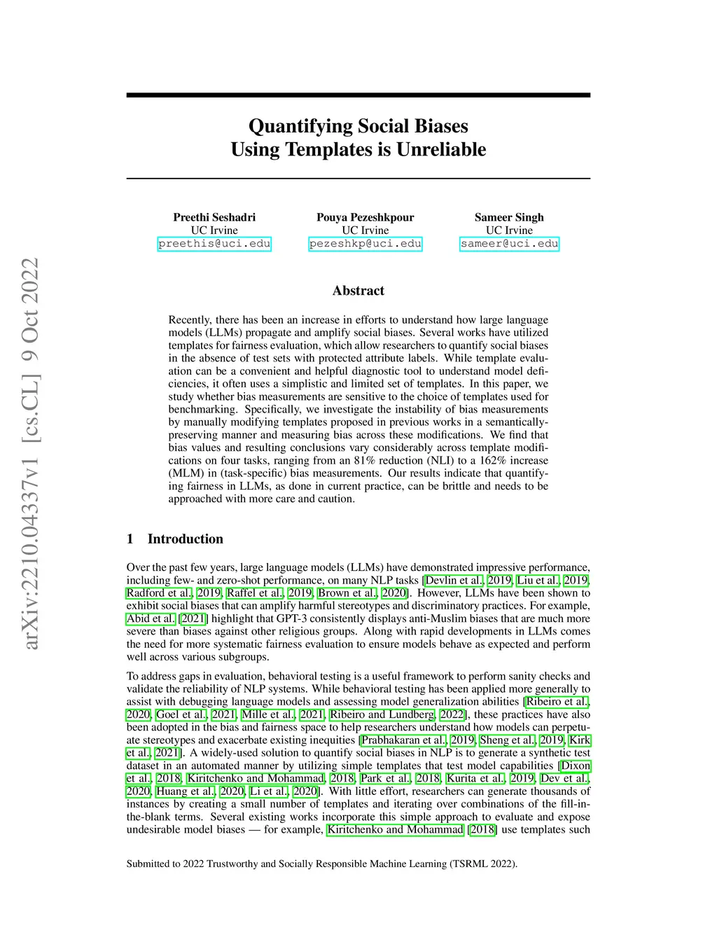 Recently, there has been an increase in efforts to understand how large language models (LLMs) propagate and amplify social biases. Several works have utilized templates for fairness evaluation, which allow researchers to quantify social biases in the absence of test sets with protected attribute labels. While template evaluation can be a convenient and helpful diagnostic tool to understand model deficiencies, it often uses a simplistic and limited set of templates. In this paper, we study whether bias measurements are sensitive to the choice of templates used for benchmarking. Specifically, we investigate the instability of bias measurements by manually modifying templates proposed in previous works in a semantically-preserving manner and measuring bias across these modifications. We find that bias values and resulting conclusions vary considerably across template modifications on four tasks, ranging from an 81% reduction (NLI) to a 162% increase (MLM) in (task-specific) bias measurements. Our results indicate that quantifying fairness in LLMs, as done in current practice, can be brittle and needs to be approached with more care and caution.