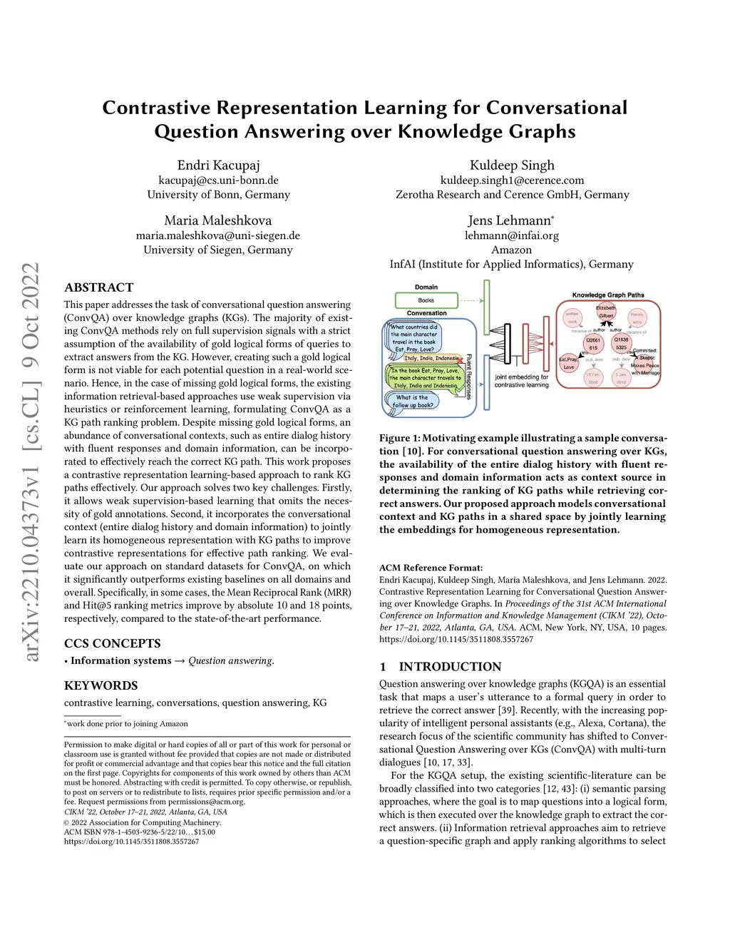 Contrastive Representation Learning for Conversational Question