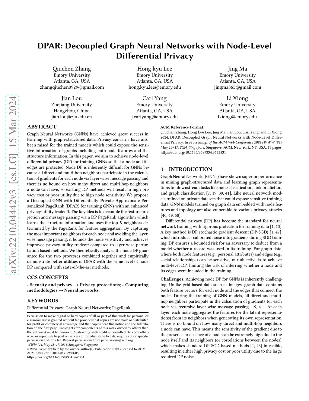 DPAR: Decoupled Graph Neural Networks with Node-Level Differential