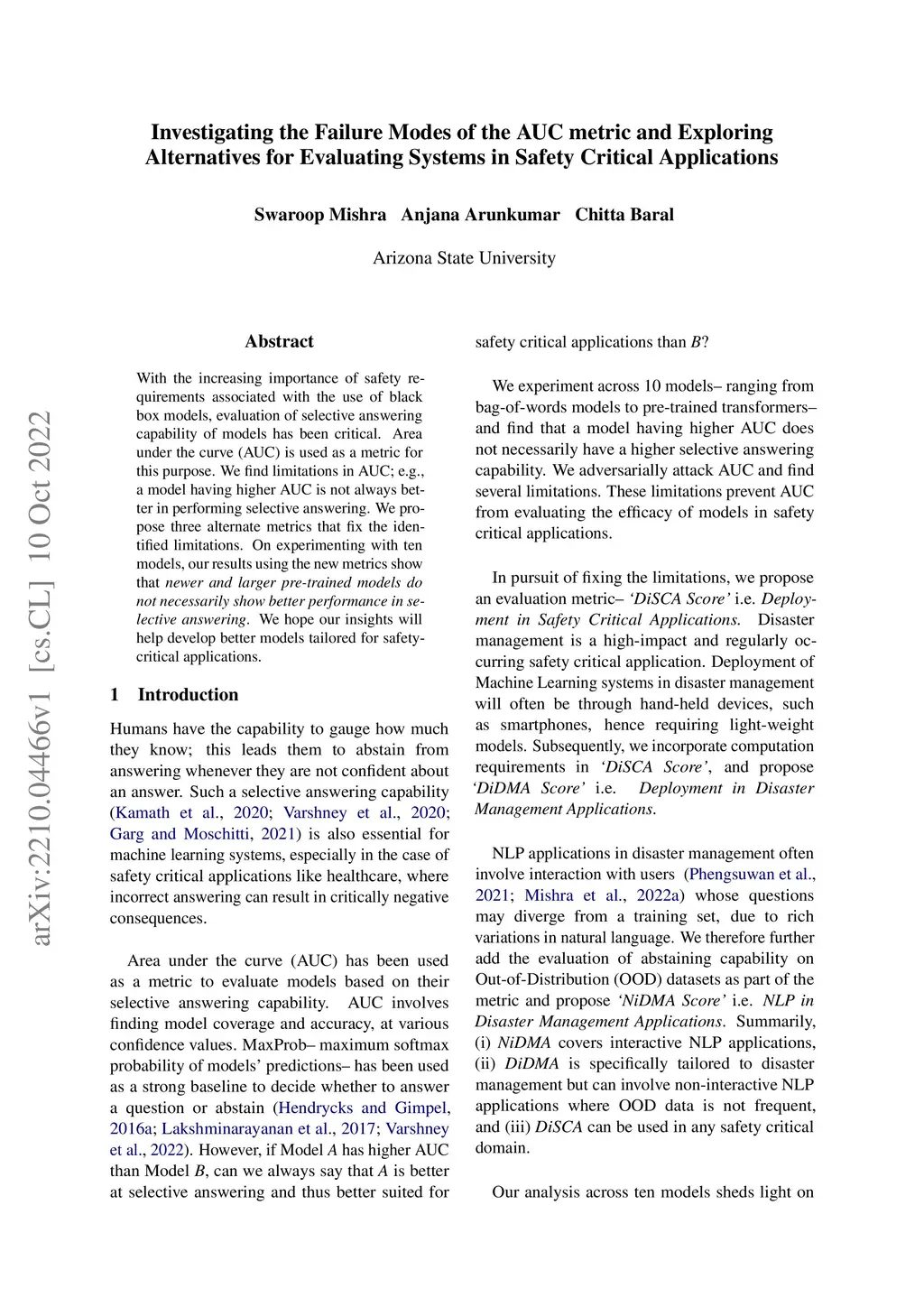 With the increasing importance of safety requirements associated with the use of black box models, evaluation of selective answering capability of models has been critical. Area under the curve (AUC) is used as a metric for this purpose. We find limitations in AUC; e.g., a model having higher AUC is not always better in performing selective answering. We propose three alternate metrics that fix the identified limitations. On experimenting with ten models, our results using the new metrics show that newer and larger pre-trained models do not necessarily show better performance in selective answering. We hope our insights will help develop better models tailored for safety-critical applications.