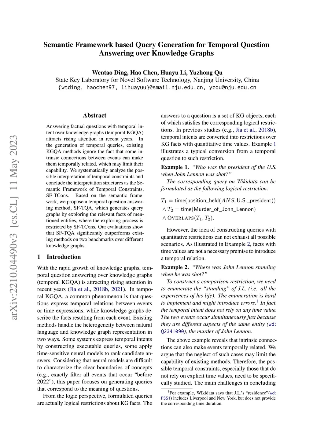 Semantic Framework based Query Generation for Temporal Question