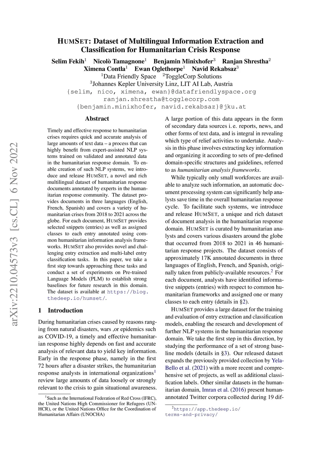 HumSet: Dataset of Multilingual Information Extraction and