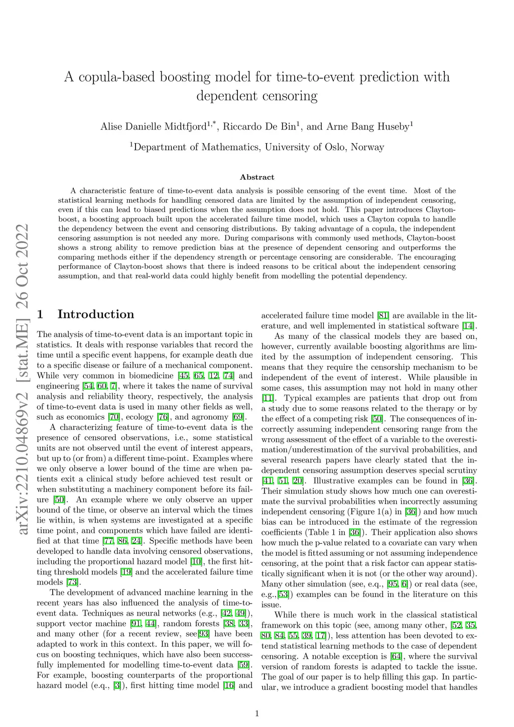 A characteristic feature of time-to-event data analysis is possible censoring of the event time. Most of the statistical learning methods for handling censored data are limited by the assumption of independent censoring, even if this can lead to biased predictions when the assumption does not hold. This paper introduces Clayton-boost, a boosting approach built upon the accelerated failure time model, which uses a Clayton copula to handle the dependency between the event and censoring distributions. By taking advantage of a copula, the independent censoring assumption is not needed any more. During comparisons with commonly used methods, Clayton-boost shows a strong ability to remove prediction bias at the presence of dependent censoring and outperforms the comparing methods either if the dependency strength or percentage censoring are considerable. The encouraging performance of Clayton-boost shows that there is indeed reasons to be critical about the independent censoring assumption, and that real-world data could highly benefit from modelling the potential dependency.