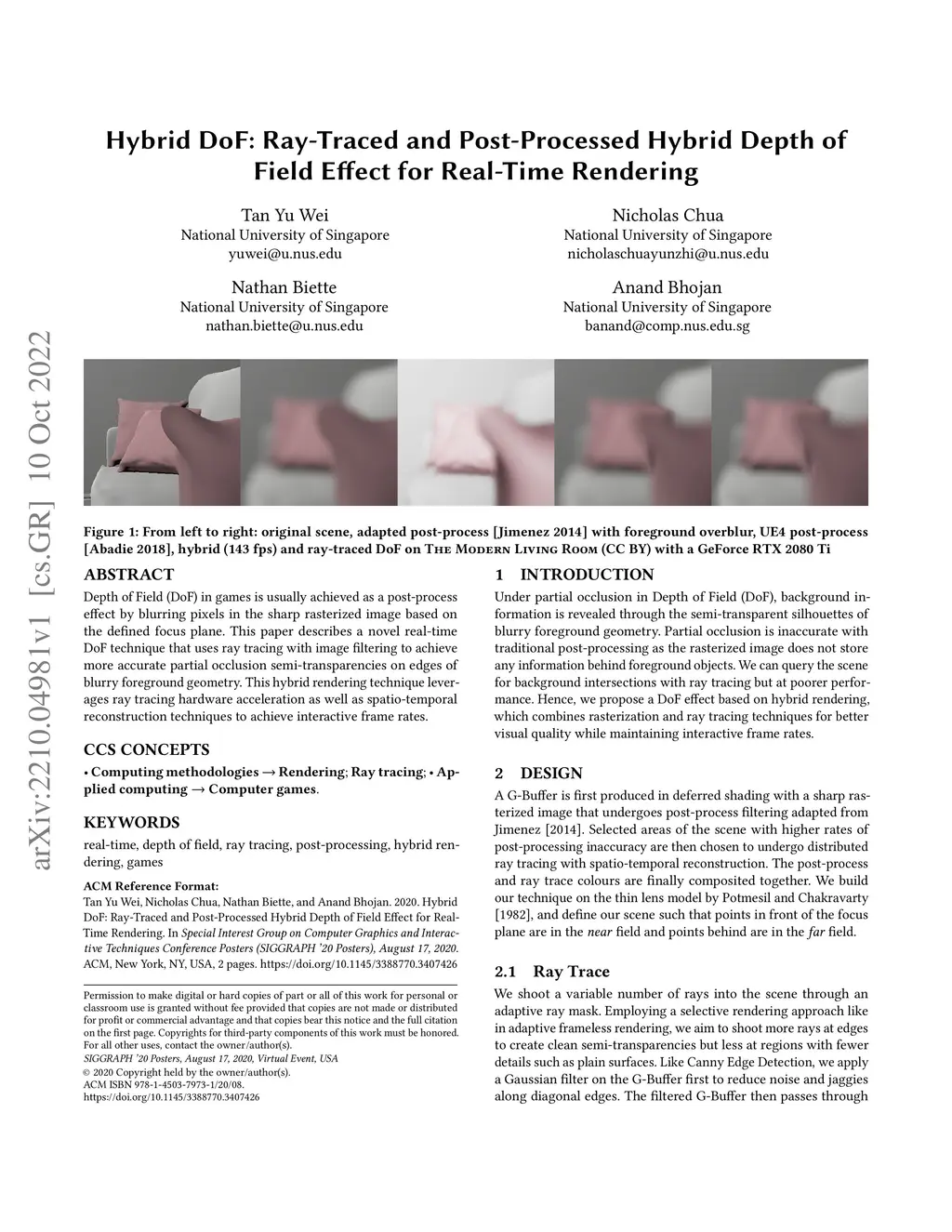Hybrid DoF: Ray-Traced and Post-Processed Hybrid Depth of Field Effect