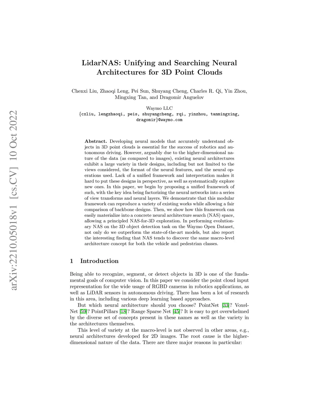 LidarNAS: Unifying and Searching Neural Architectures for 3D Point