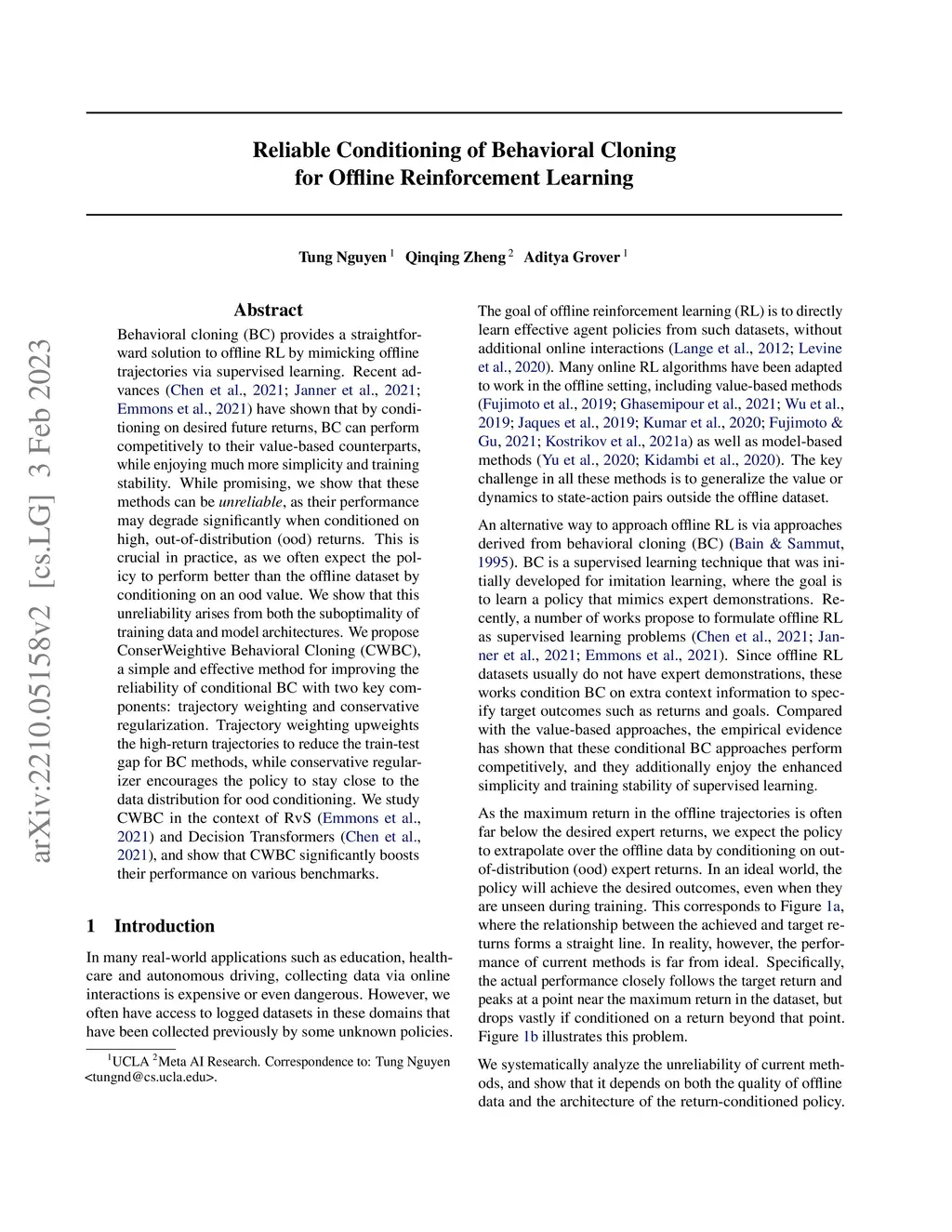 Reliable Conditioning of Behavioral Cloning for Offline Reinforcement
