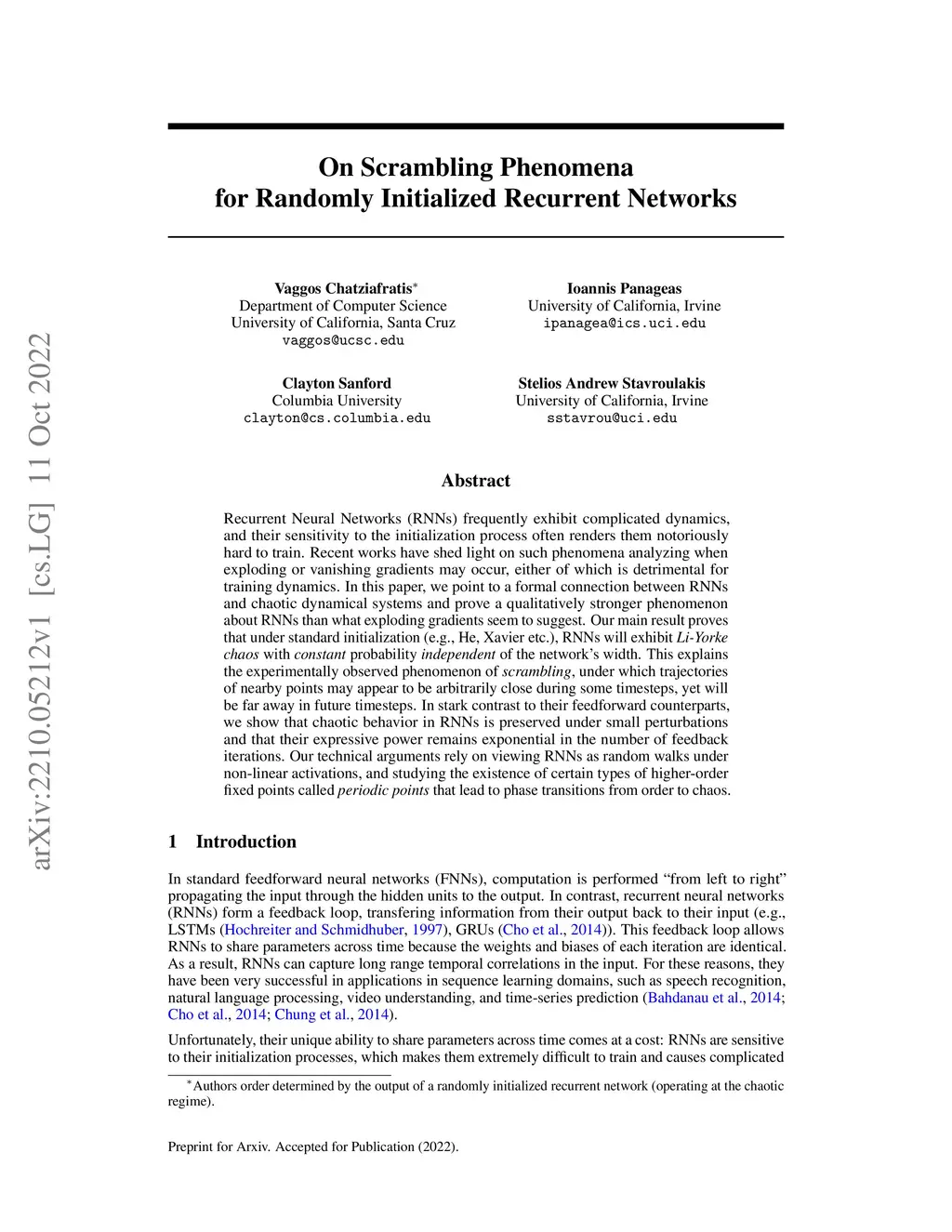 On Scrambling Phenomena for Randomly Initialized Recurrent Networks