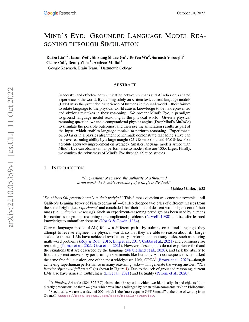 Mind's Eye: Grounded Language Model Reasoning through Simulation