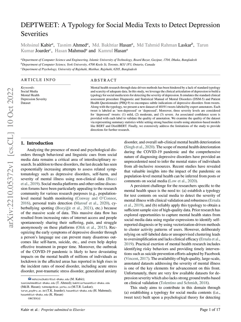 DEPTWEET: A Typology for Social Media Texts to Detect Depression