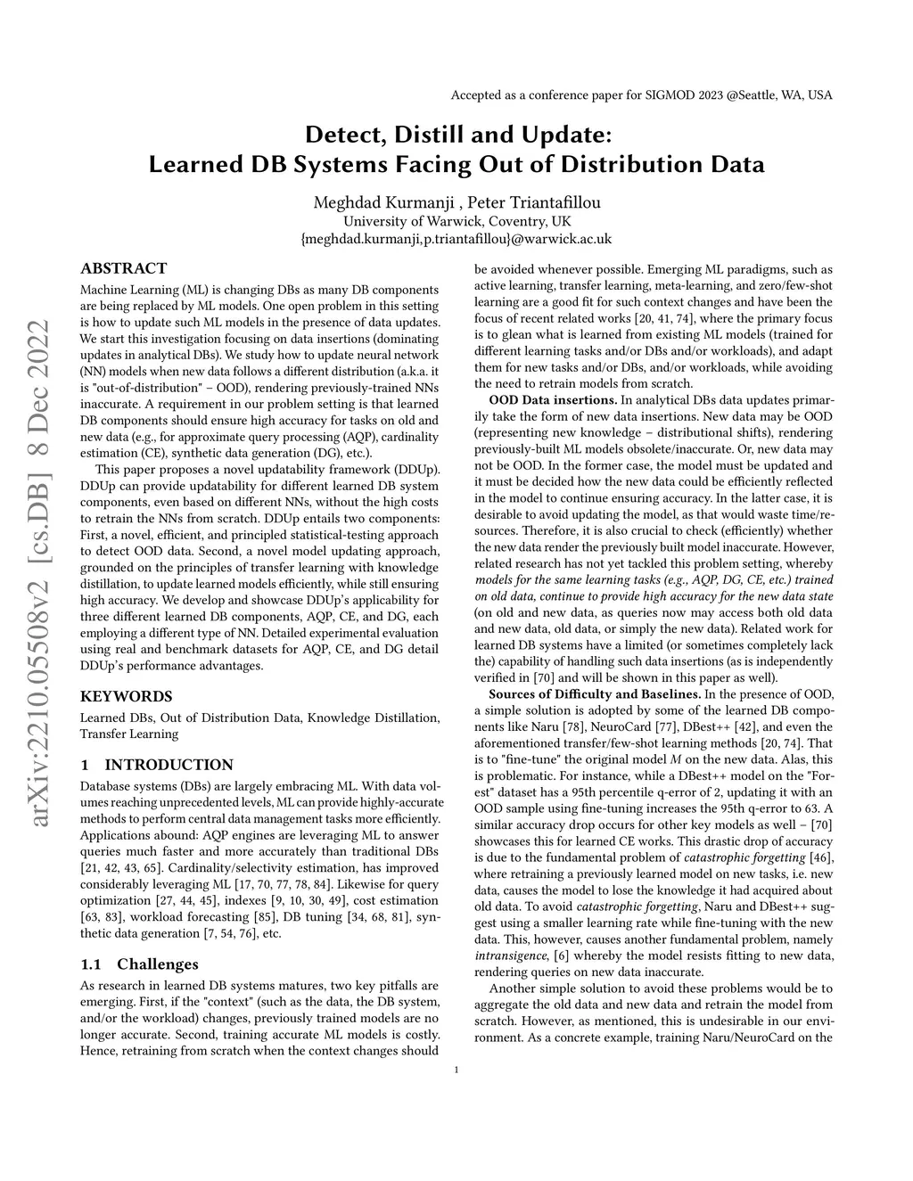 Detect, Distill and Update: Learned DB Systems Facing Out of