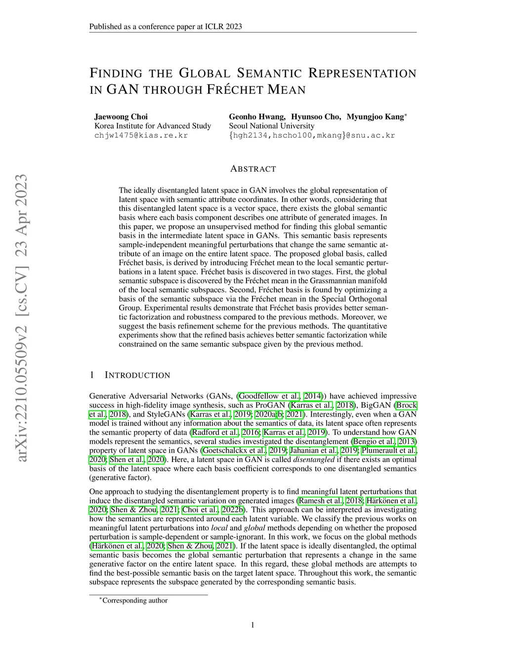Finding the global semantic representation in GAN through Frechet Mean