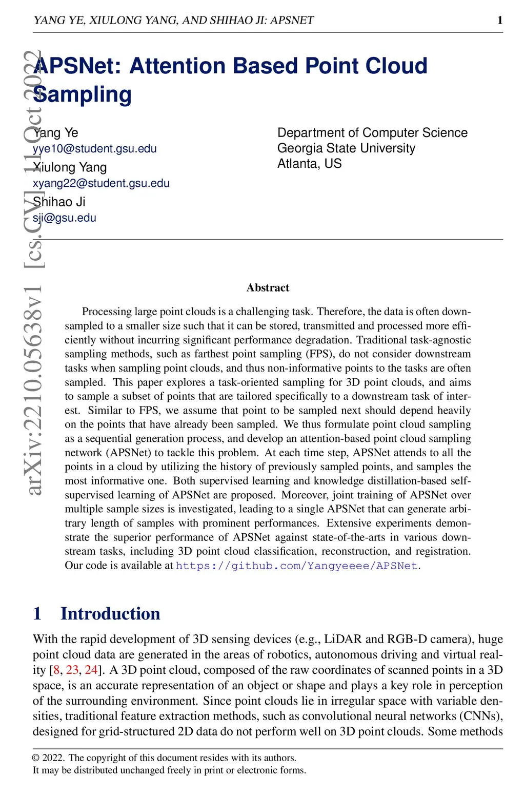 APSNet: Attention Based Point Cloud Sampling