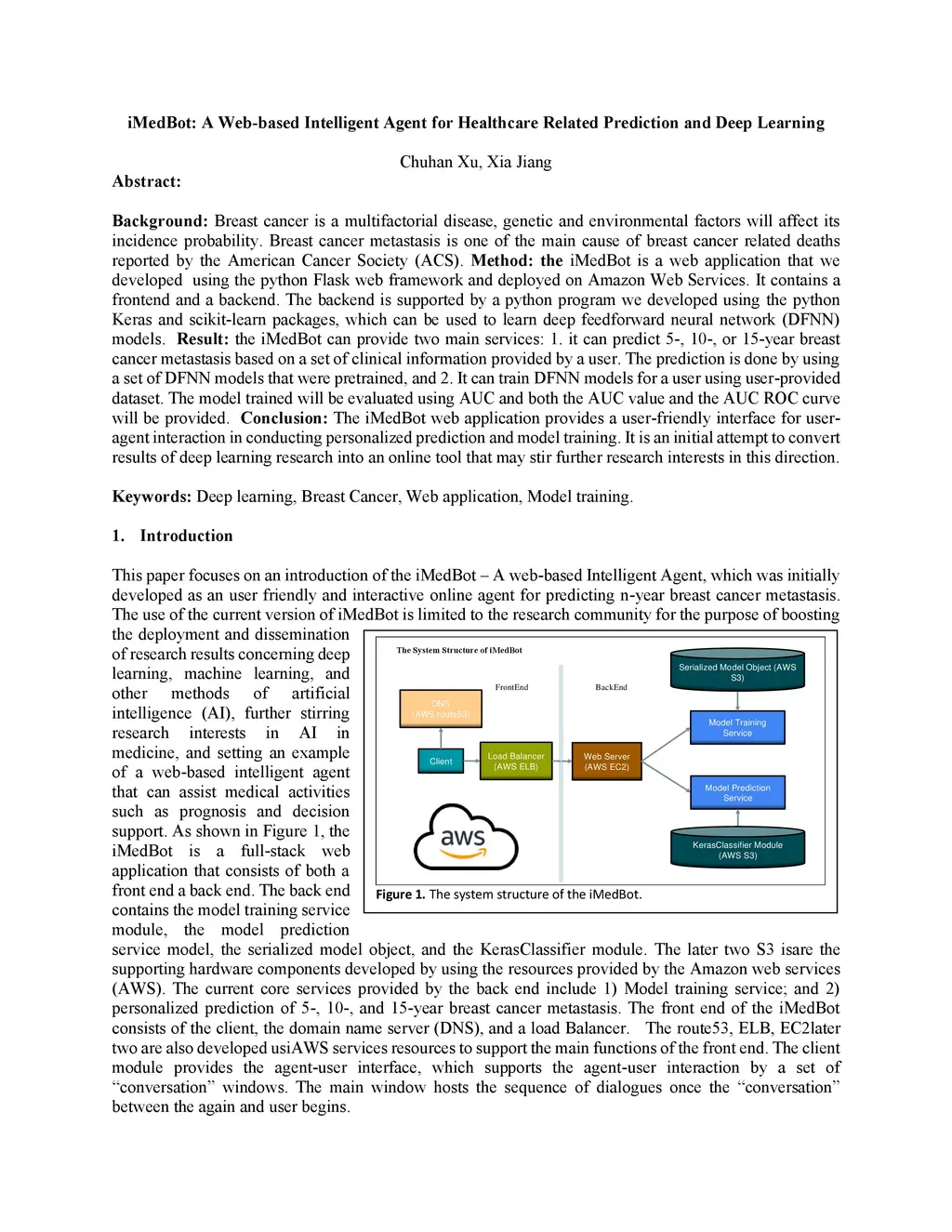 Background: Breast cancer is a multifactorial disease, genetic and environmental factors will affect its incidence probability. Breast cancer metastasis is one of the main cause of breast cancer related deaths reported by the American Cancer Society (ACS). Method: the iMedBot is a web application that we developed using the python Flask web framework and deployed on Amazon Web Services. It contains a frontend and a backend. The backend is supported by a python program we developed using the python Keras and scikit-learn packages, which can be used to learn deep feedforward neural network (DFNN) models. Result: the iMedBot can provide two main services: 1. it can predict 5-, 10-, or 15-year breast cancer metastasis based on a set of clinical information provided by a user. The prediction is done by using a set of DFNN models that were pretrained, and 2. It can train DFNN models for a user using user-provided dataset. The model trained will be evaluated using AUC and both the AUC value and the AUC ROC curve will be provided. Conclusion: The iMedBot web application provides a user-friendly interface for user-agent interaction in conducting personalized prediction and model training. It is an initial attempt to convert results of deep learning research into an online tool that may stir further research interests in this direction. Keywords: Deep learning, Breast Cancer, Web application, Model training.