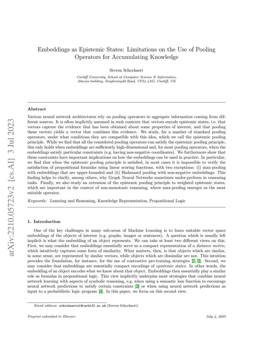 Various neural network architectures rely on pooling operators to aggregate information coming from different sources. It is often implicitly assumed in such contexts that vectors encode epistemic states, i.e. that vectors capture the evidence that has been obtained about some properties of interest, and that pooling these vectors yields a vector that combines this evidence. We study, for a number of standard pooling operators, under what conditions they are compatible with this idea, which we call the epistemic pooling principle. While we find that all the considered pooling operators can satisfy the epistemic pooling principle, this only holds when embeddings are sufficiently high-dimensional and, for most pooling operators, when the embeddings satisfy particular constraints (e.g. having non-negative coordinates). We furthermore show that these constraints have important implications on how the embeddings can be used in practice. In particular, we find that when the epistemic pooling principle is satisfied, in most cases it is impossible to verify the satisfaction of propositional formulas using linear scoring functions, with two exceptions: (i) max-pooling with embeddings that are upper-bounded and (ii) Hadamard pooling with non-negative embeddings. This finding helps to clarify, among others, why Graph Neural Networks sometimes under-perform in reasoning tasks. Finally, we also study an extension of the epistemic pooling principle to weighted epistemic states, which are important in the context of non-monotonic reasoning, where max-pooling emerges as the most suitable operator.
