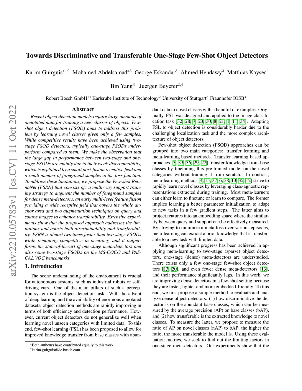Towards Discriminative and Transferable One-Stage Few-Shot Object