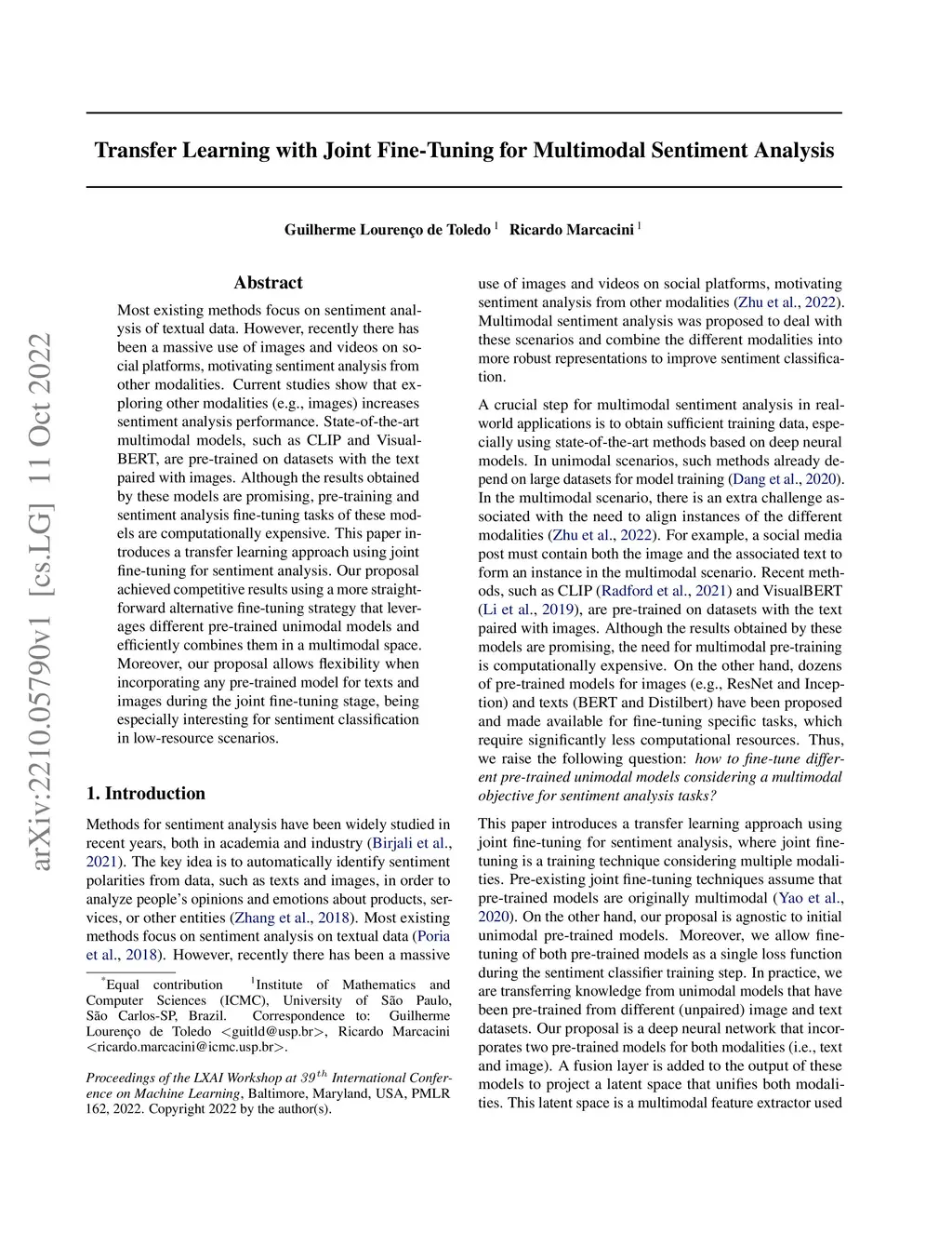 Transfer Learning with Joint Fine-Tuning for Multimodal Sentiment