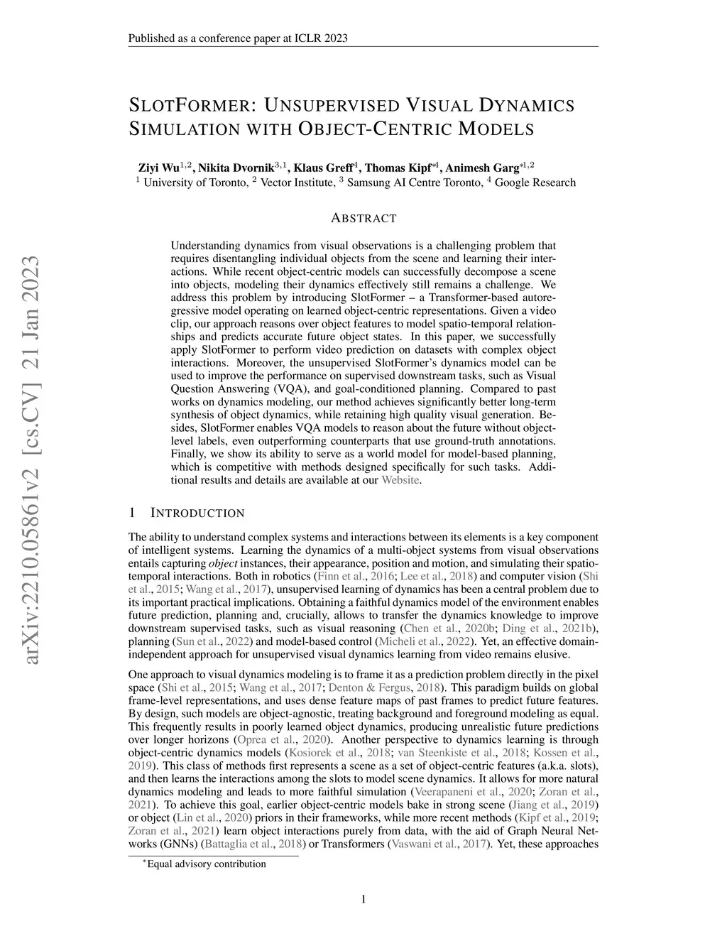 SlotFormer: Unsupervised Visual Dynamics Simulation with Object-Centric Models