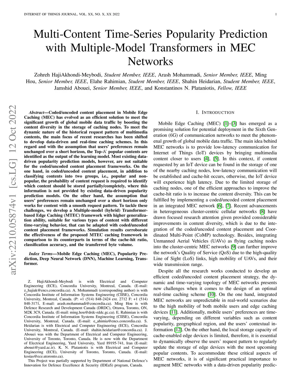 Coded/uncoded content placement in Mobile Edge Caching (MEC) has evolved as an efficient solution to meet the significant growth of global mobile data traffic by boosting the content diversity in the storage of caching nodes. To meet the dynamic nature of the historical request pattern of multimedia contents, the main focus of recent researches has been shifted to develop data-driven and real-time caching schemes. In this regard and with the assumption that users' preferences remain unchanged over a short horizon, the Top-K popular contents are identified as the output of the learning model. Most existing datadriven popularity prediction models, however, are not suitable for the coded/uncoded content placement frameworks. On the one hand, in coded/uncoded content placement, in addition to classifying contents into two groups, i.e., popular and nonpopular, the probability of content request is required to identify which content should be stored partially/completely, where this information is not provided by existing data-driven popularity prediction models. On the other hand, the assumption that users' preferences remain unchanged over a short horizon only works for content with a smooth request pattern. To tackle these challenges, we develop a Multiple-model (hybrid) Transformer-based Edge Caching (MTEC) framework with higher generalization ability, suitable for various types of content with different time-varying behavior, that can be adapted with coded/uncoded content placement frameworks. Simulation results corroborate the effectiveness of the proposed MTEC caching framework in comparison to its counterparts in terms of the cache-hit ratio, classification accuracy, and the transferred byte volume.