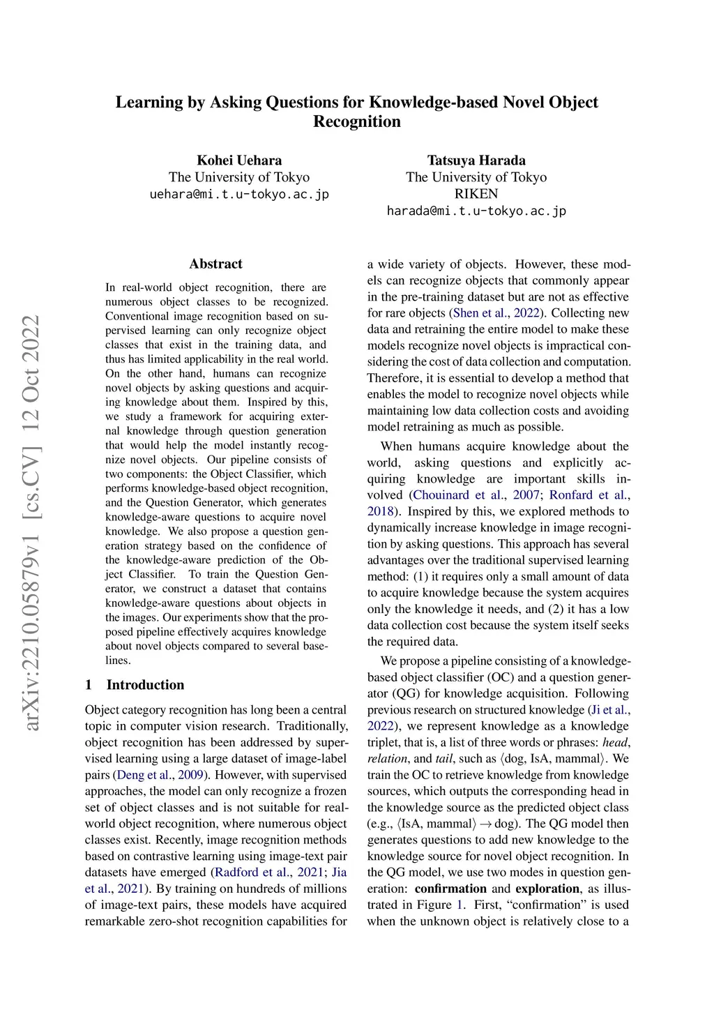 Learning by Asking Questions for Knowledge-based Novel Object