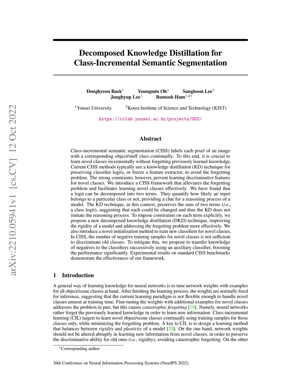 Decomposed Knowledge Distillation for Class-Incremental Semantic