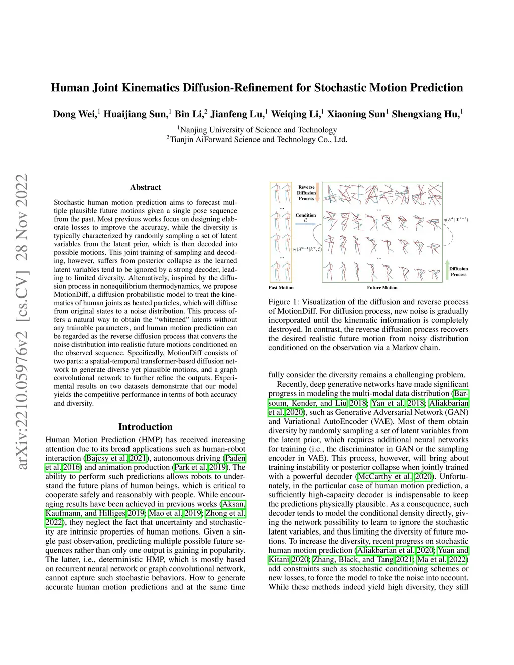 Human Joint Kinematics Diffusion-Refinement for Stochastic Motion