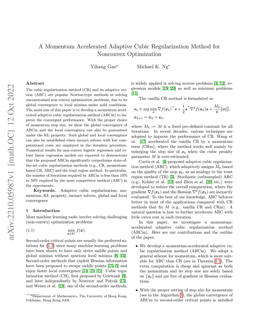 A Momentum Accelerated Adaptive Cubic Regularization Method for