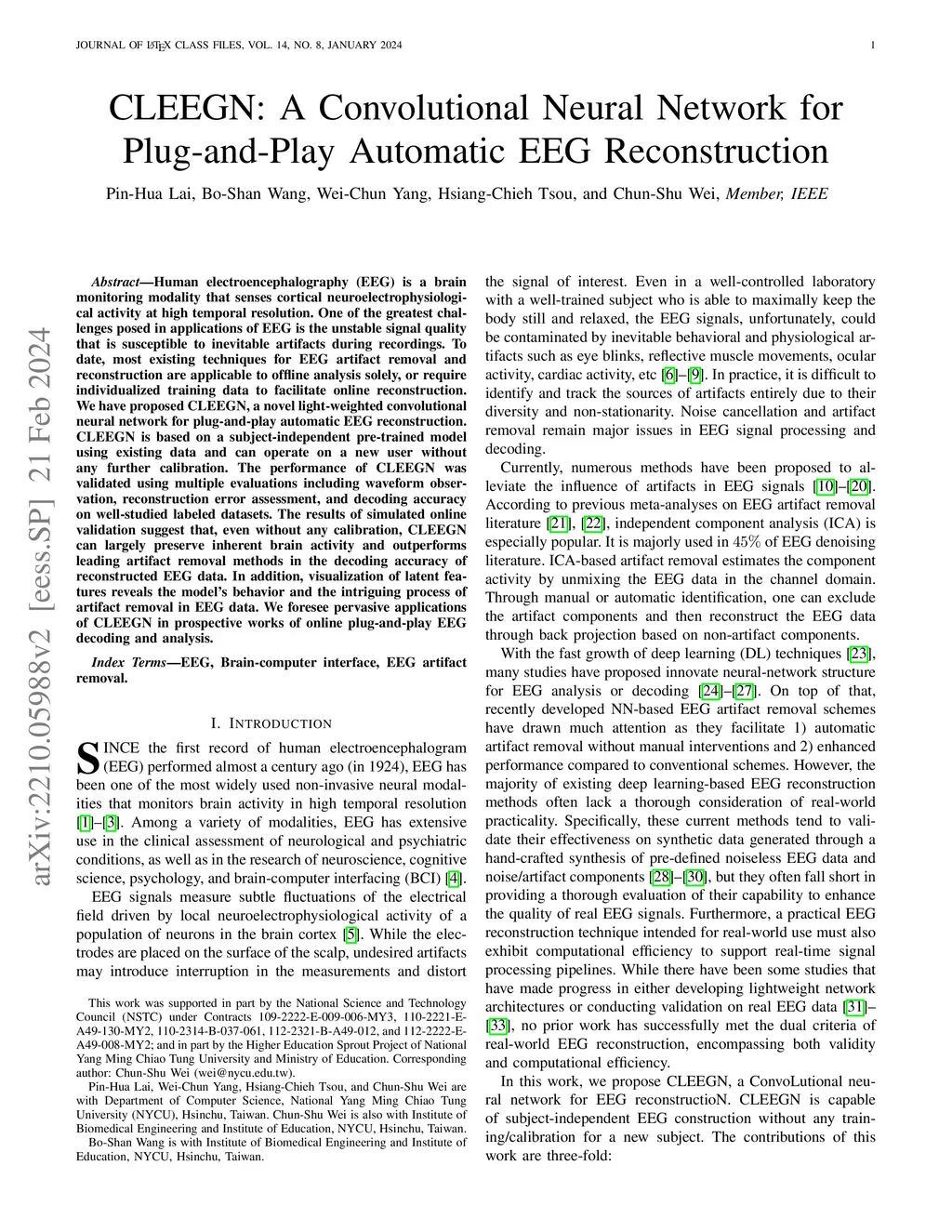 Human electroencephalography (EEG) is a brain monitoring modality that senses cortical neuroelectrophysiological activity in high-temporal resolution. One of the greatest challenges posed in applications of EEG is the unstable signal quality susceptible to inevitable artifacts during recordings. To date, most existing techniques for EEG artifact removal and reconstruction are applicable to offline analysis solely, or require individualized training data to facilitate online reconstruction. We have proposed CLEEGN, a novel convolutional neural network for plug-and-play automatic EEG reconstruction. CLEEGN is based on a subject-independent pre-trained model using existing data and can operate on a new user without any further calibration. The performance of CLEEGN was validated using multiple evaluations including waveform observation, reconstruction error assessment, and decoding accuracy on well-studied labeled datasets. The results of simulated online validation suggest that, even without any calibration, CLEEGN can largely preserve inherent brain activity and outperforms leading online/offline artifact removal methods in the decoding accuracy of reconstructed EEG data. In addition, visualization of model parameters and latent features exhibit the model behavior and reveal explainable insights related to existing knowledge of neuroscience. We foresee pervasive applications of CLEEGN in prospective works of online plug-and-play EEG decoding and analysis.