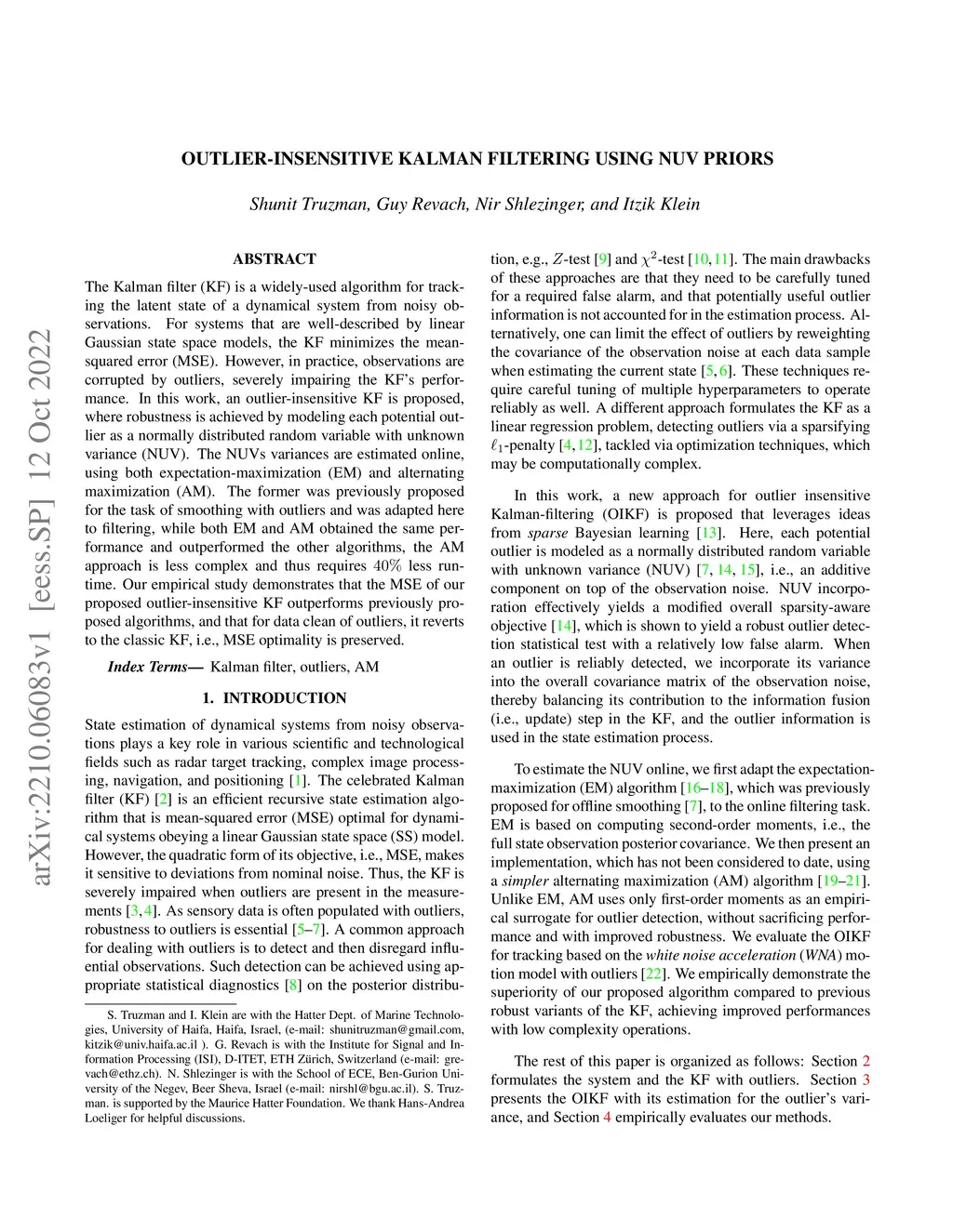 The Kalman filter (KF) is a widely-used algorithm for tracking the latent state of a dynamical system from noisy observations. For systems that are well-described by linear Gaussian state space models, the KF minimizes the mean-squared error (MSE). However, in practice, observations are corrupted by outliers, severely impairing the KFs performance. In this work, an outlier-insensitive KF is proposed, where robustness is achieved by modeling each potential outlier as a normally distributed random variable with unknown variance (NUV). The NUVs variances are estimated online, using both expectation-maximization (EM) and alternating maximization (AM). The former was previously proposed for the task of smoothing with outliers and was adapted here to filtering, while both EM and AM obtained the same performance and outperformed the other algorithms, the AM approach is less complex and thus requires 40 percentage less run-time. Our empirical study demonstrates that the MSE of our proposed outlier-insensitive KF outperforms previously proposed algorithms, and that for data clean of outliers, it reverts to the classic KF, i.e., MSE optimality is preserved