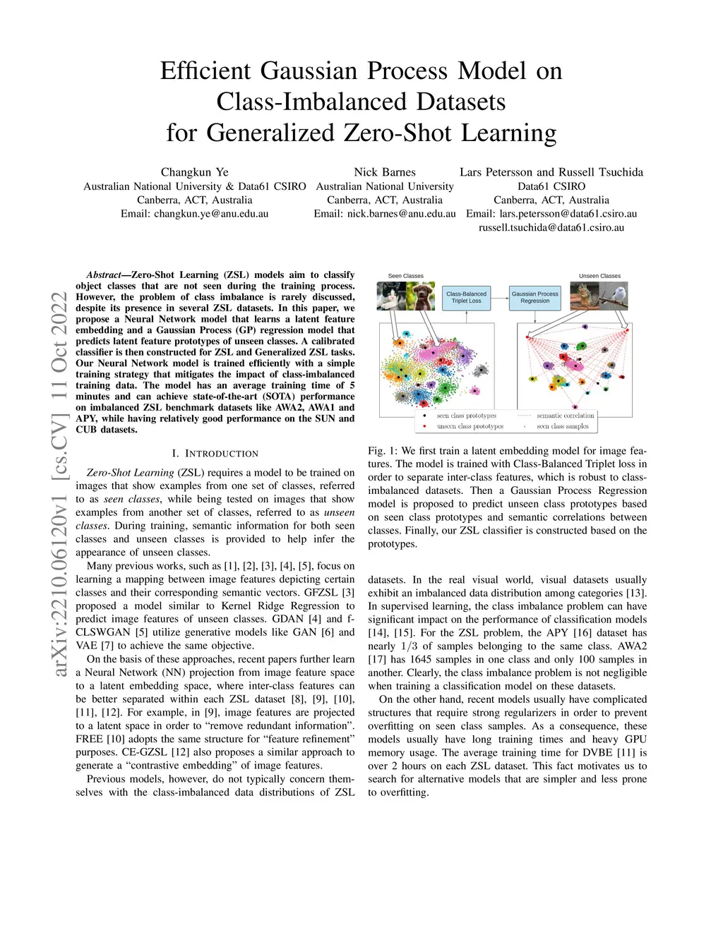 Zero-Shot Learning (ZSL) models aim to classify object classes that are not seen during the training process. However, the problem of class imbalance is rarely discussed, despite its presence in several ZSL datasets. In this paper, we propose a Neural Network model that learns a latent feature embedding and a Gaussian Process (GP) regression model that predicts latent feature prototypes of unseen classes. A calibrated classifier is then constructed for ZSL and Generalized ZSL tasks. Our Neural Network model is trained efficiently with a simple training strategy that mitigates the impact of class-imbalanced training data. The model has an average training time of 5 minutes and can achieve state-of-the-art (SOTA) performance on imbalanced ZSL benchmark datasets like AWA2, AWA1 and APY, while having relatively good performance on the SUN and CUB datasets.