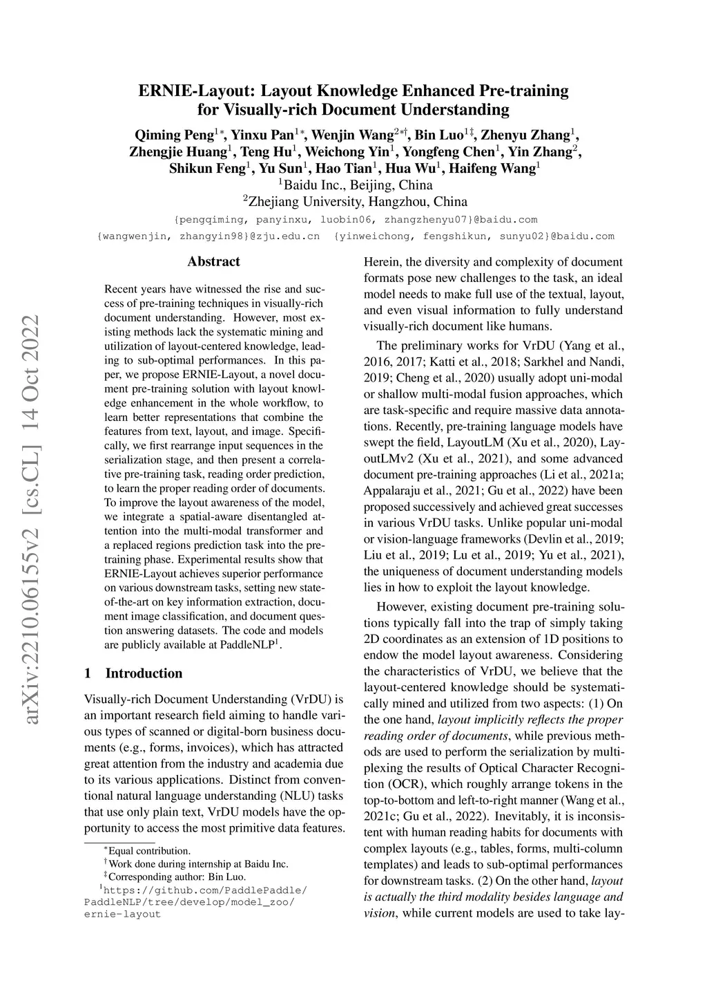 ERNIE-Layout: Layout Knowledge Enhanced Pre-training for Visually-rich