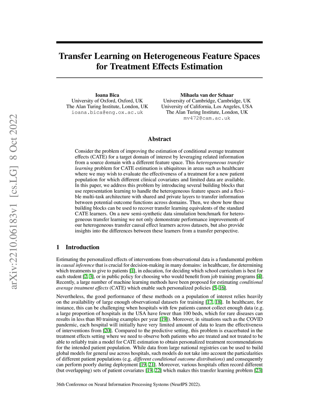 Transfer Learning on Heterogeneous Feature Spaces for Treatment Effects