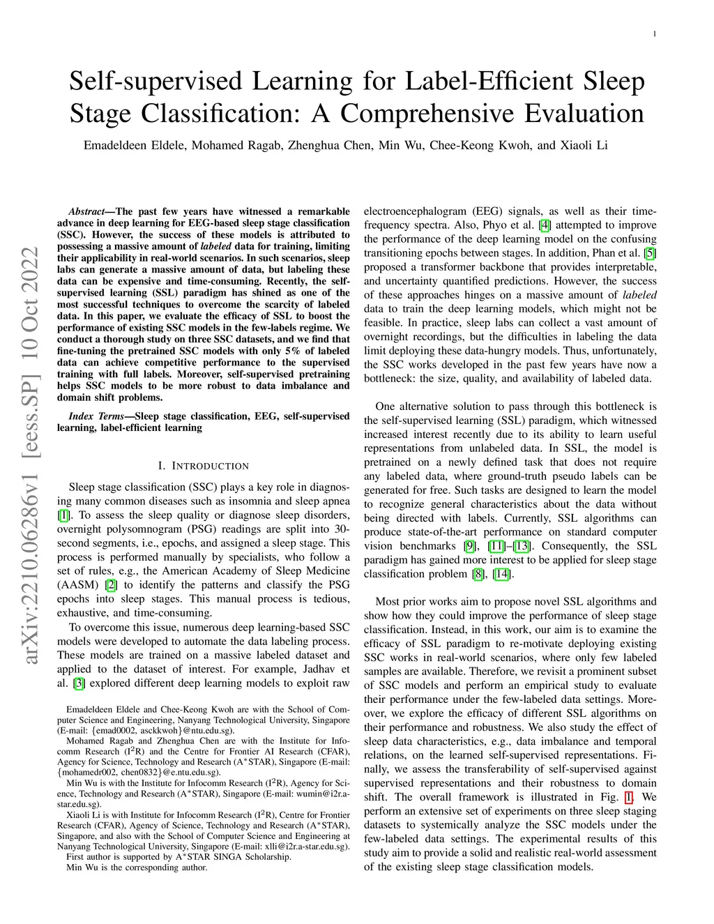 Self-supervised Learning for Label-Efficient Sleep Stage Classification: